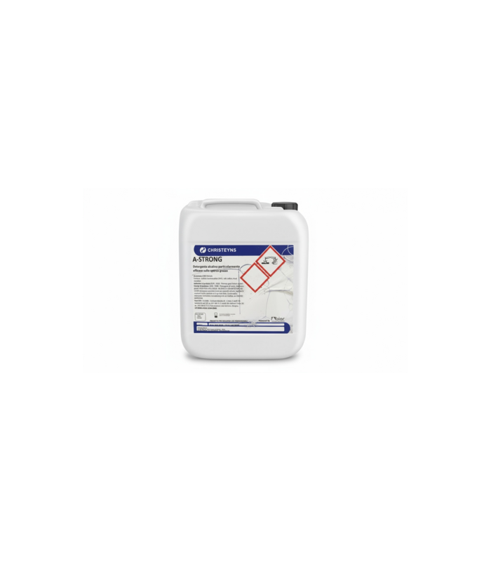 A-STRONG è un detergente alcalino per uso su tessuti naturali e sintetici, efficace contro sporco grasso e magro.