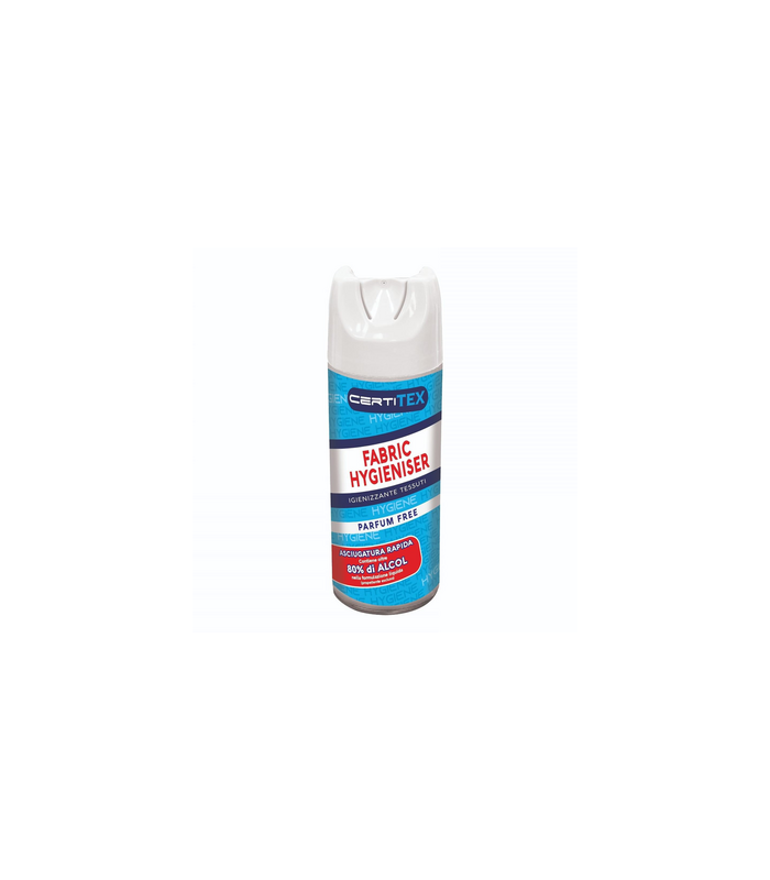 CERTITEX SPRAY IGIENIZZANTE è uno spray igienizzante multifunzione con oltre l’80% di alcool, progettato per igienizzare a fondo tessuti e superfici dure.